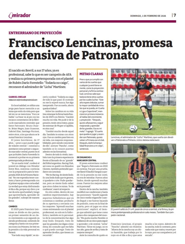 El 2025 para Francisco Lencinas se divide en dos partes, un primer semestre de un claro crecimiento a un segundo ya siendo profesional, subiendo de categoría y hasta con sus primeros roces con Primera. De vivir en la pensión a la vida personal en Paraná. “Fue todo muy rápido”, se sinceró y confesó: “Todavía no caigo de todo lo que pasó. El contrato no me lo esperé nunca, fue algo inesperado. Fue un sueño, ahora queda el debut”.